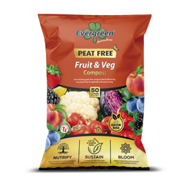 Miracle-Gro® Performance Organics Peat Free Fruit & Veg Compost is a high performance 100% natural and organic peat-free compost ideal for growing your own produce such as fruits and vegetables. Perfect for use in beds, borders, hanging baskets, pots and containers. Glorious on plants, gentle on nature! Ideal for fruits and vegetables. Works well for young plants and established plants. Not suitable for acid-loving, ericaceous plants such as blueberries. Perfect to plant directly in the bag or used as special compost for fruits and vegetables.