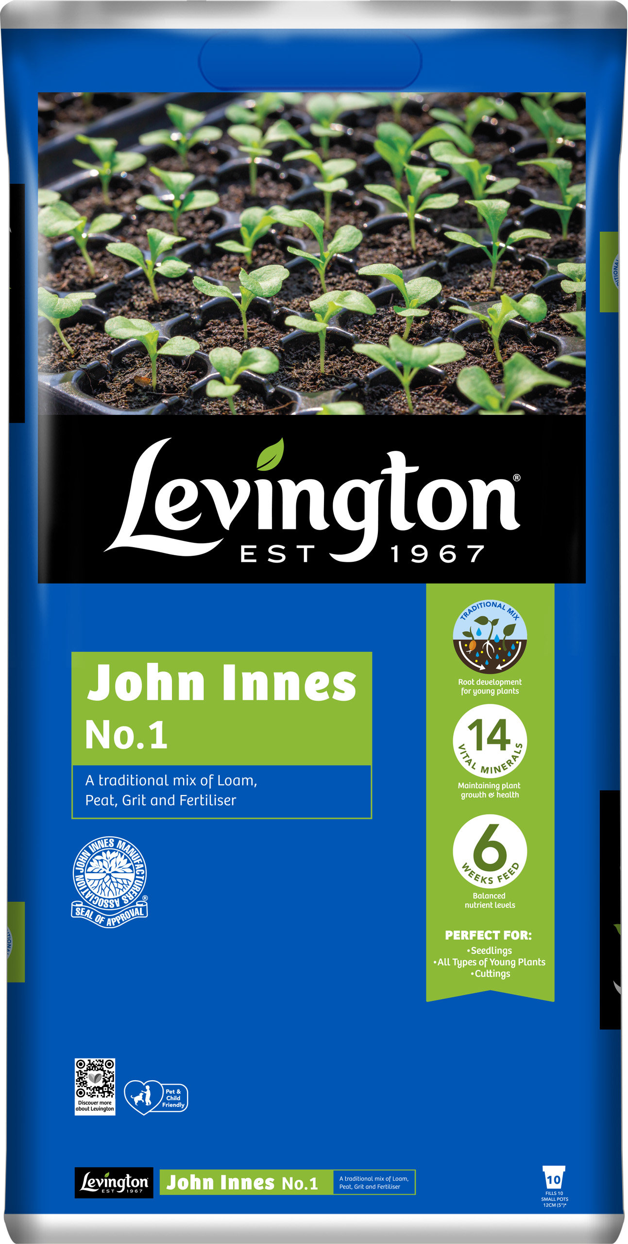Approved by the John Innes Institute, Levington John Innes No.1 is a great start for your young plants and root cuttings. It has been specially developed, with a unique combination of 14 vital minerals for maintaining plants growth and health. Ideal for all young plants and root cuttings
