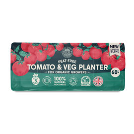 Professional quality, 100% Peat-Free Tomato & Veg Planter. Soil Association Approved for Organic growing. Chemical free and natural. 100% sustainable: grown, harvested, sourced & manufactured in the UK. Suitable for a wide range of grow your own, including Tomato's, Peppers, Beans, and Salads . Animal product free. Available in 60 litre bags, making it the biggest planter available in the UK market.